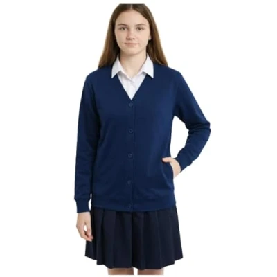 V Neck Kids School Cardigans Soft to Touch Light Weight Premium Quality Fabric, with a high quality finish to give your child a elegant and smart look. Ideal for all seasons, so can even be worn all year round as a regular outfit. Two side Pockets Please see size chart in picture Material: 50% Polyester 50% Cotton Twin Needle Stitching at Neck, Shoulders, Armholes & Sleeves Lycra Ribbed Cuffs, Welt & Neck for Added Stretch Machine Washable , Following washing instructions will give longevity and lasting power and would avoid Shrinking and fading of colour
