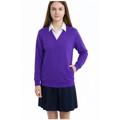 INSAFIANS Girls School Cardigan Stretchable Fleece Sweat Shirt with Front Buttons & Pockets (as8, Age, 2_Years, 3_Years, Regular, Purple)