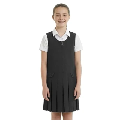 INSAFIANS Girls School Pinafore Dress Pleated 2 Button Kids Uniform (Black, 10 11 Years)