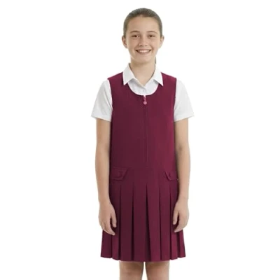 INSAFIANS Girls School Pinafore Dress Pleated 2 Button Kids Uniform (Maron 11 12)