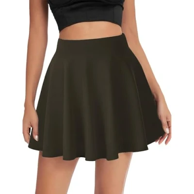 INSAFIANS Ladies Skater MINI Skirt Flared High Waist Stretch School guaranteed, DANCE, GYM, CASUAL, WOMEN KIDS GIRLS SKIRT(CHAR1314) Charcoal