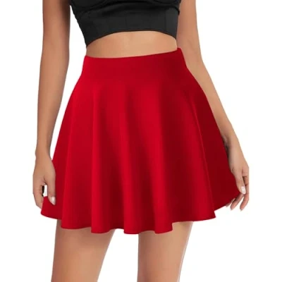 INSAFIANS Ladies Skater MINI Skirt Flared High Waist Stretch School guaranteed, DANCE, GYM, CASUAL, WOMEN KIDS GIRLS SKIRT(RED78)