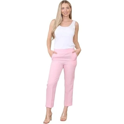 INSAFIANS Women Half Elasticated Pull Up Pants Ladies Office Wear Trousers Work Formal (as8, Numeric, Numeric_12, Regular, Long, Pink)