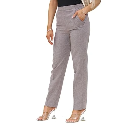 INSAFIANS Women Half Elasticated Pull Up Pants Ladies Office Wear Trousers Work Formal (Beig L27 W20)