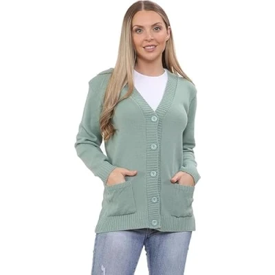 INSAFIANS Women's Knit Cardigan Sweater with Buttons 100% Cotton Long Sleeve Ladies Girls (as8, Alpha, m, l, Regular, Green)