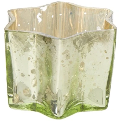 AmazonMercury Glass Star Tea Light Holders - with Distressed Light Green Foil, Set of 6 Dimensions: 7cm x 7cm x 4.5cm Set of 6 Fit a standard tea light Perfect for Weddings, Events and Gifts