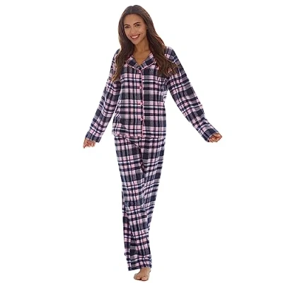 INSIGNIA Ladies Button Up Cotton Blend Flannel Traditional Pyjamas (Navy Check, 20 22)