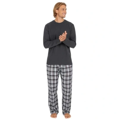 INSIGNIA Mens Jersey Long Sleeve Top With Cotton Flannel Bottoms Pyjamas Sets (UK, Alpha, M, Regular, Charcoal Black)