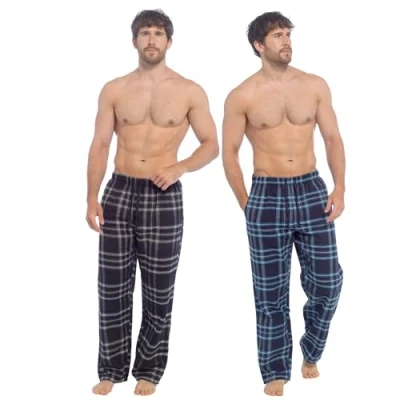 INSIGNIA Mens Pyjamas Lounge Pants Cotton Check Bottoms 2 pack (Black Navy Check, XXL)