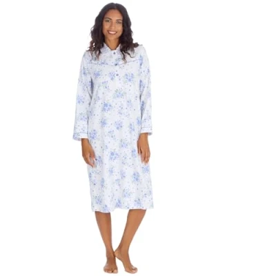 INSIGNIA Womens Nighties Brushed Pure Cotton Long Sleeve Nightdress (Blue Floral, 22 24)