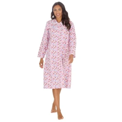 INSIGNIA Womens Nighties Brushed Pure Cotton Long Sleeve Nightdress (Pink, 22 24)