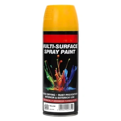 Inspired Essentials All Purpose Aerosol Spray Paint 400ml Quick Drying Spray, Fast Dry and Excellent Coverage for Metal, Wood, Plastic More (2, Dekton Yellow)