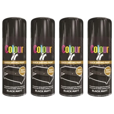 Inspired Essentials All Purpose Aerosol Spray Paint 400ml Quick Drying Spray, Fast Dry and Excellent Coverage for Metal, Wood, Plastic More (4, Black Matt)