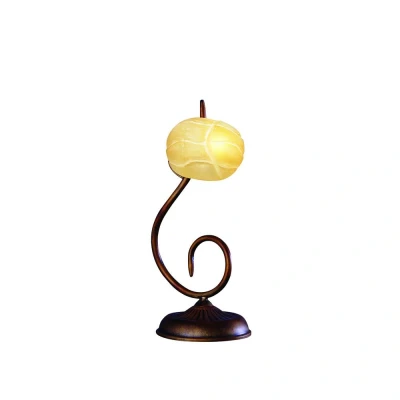 The Wave Table Lamp 1 Light in rustic gold offers a chic lighting solution for any surface. With its amber frosted shade, it adds a warm glow and stylish accent to your home decor.