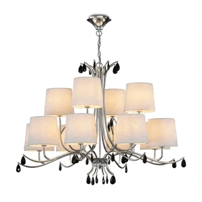 Inspired Mantra Andrea Ceiling Pendant 100cm Round, 8+4 x E14 (Max 20W), Polished Chrome, White Shades, Black Crystal Droplets