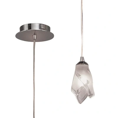 An elegant range of polished chrome endless stems and compact frosted floral glass shades.