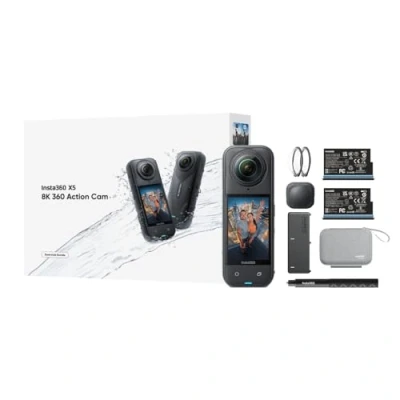 8K30fps 360° Video with Dual 1/1.28" Sensors: Capture stunning detail with dual 1/1.28" sensors shooting up to 8K30fps. Film epic adventures, everyday moments, and more, all in sharp, immersive 360° video with better clarity, color, and dynamic range. Triple AI Chip Design, Better Low Light: Shoot confidently even in challenging lighting. X5’s triple AI chip design powers advanced noise reduction and image processing, delivering crisp, vibrant footage even in dim or night conditions. InstaFrame Mode: Get a ready-to-share flat video instantly. Choose auto-framing to let the camera track you, or lock in a fixed angle. Preview the 360° video later to add in any unexpected moments, too. Tougher, Replaceable Lenses: Brand new, fully replaceable lenses are here. X5’s upgraded lenses are tough, durable, and scratch-resistant. Easily replace them in seconds so you’re always ready to shoot your next mission. Essentials Bundle includes 1x Insta360 X5, 1x Additional Battery, 1x Utility Fast Charge Case, 1x 114cm Invisible Selfie Stick, 1x Standard Lens Guards, 1x Lens Cap and 1x Carry Case.