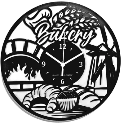 Instant Karma Clocks Clock Bakery Bread Wall Art Kitchen Home Decor, Engineered Wood, Black, Ø12inch