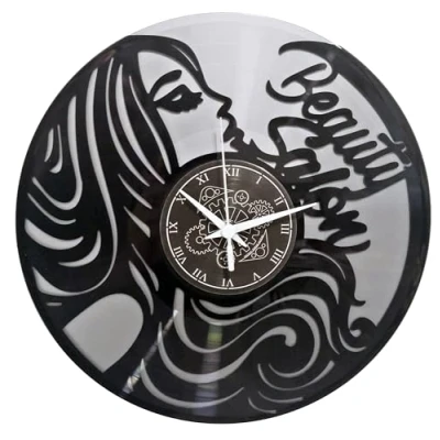 Wall clock made from 2 overlapping vinyl music discs. 30cm /12 inch in diameter; Continuous quartz movement; Quality hands Unique wall decoration, vinyl wall clock makes your room more stylish, you can design the clock position and choose the style you like according to your preference. The clock comes with a hook and a wide slot at the back for easy suspension. Unique style, beautiful and exquisite, is a good gift for friends and family. A quiet environment for sleeping, high quality movements, precise hands and a long lifespan