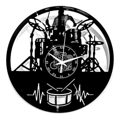 🥁 Dynamic Drum Design: Crafted from a vinyl record with detailed shapes of a drum kit and sticks 🎶 For Music Lovers: A bold tribute to rhythm and percussion, ideal for any music-themed space 🎵 Studio-Ready Style: A perfect centerpiece for practice rooms, studios, or jam spaces 🎯 Made for: Drummers, musicians, music producers, studio owners, percussion teachers 🛠️ Ready to Use: Easy to hang, AA battery-operated (not included) 📏 Compact Size: Diameter 12 inches | 30 cm