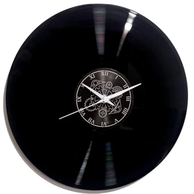 Instant Karma Clocks Vinyl Wall Clock with Roman Numerals and Gear Center Silent No Ticking Perfect for Bedroom, Office, Studio, Cabin, Living Room Unique Decoration