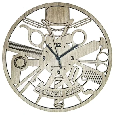 💈 Barber Elegance: A refined design featuring scissors, razors, combs, a top hat and bowtie—ideal for barbers, hairstylists or retro grooming spaces. 🛠️ High-Quality Materials: Durable, precisely cut structure with aluminum hands for long-lasting function. ♻️ Artistic Craftsmanship: Designed with intricate cut-out details for a striking and vintage-inspired look. 🛠️ Ready to Use: Easy to hang, AA battery-operated (not included). 📏 Dimensions: 12 inches | 30 cm diameter.