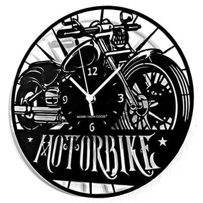 Instant Karma Clocks Wall Clock ➤ Motorcycle Motorbike Road Rider Classic Garage Retro Design, HDF Wood, Black, Ø12inch