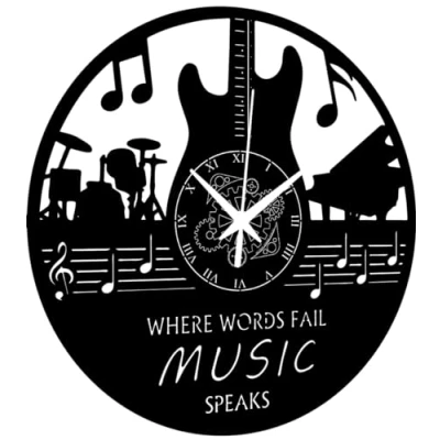 Clock made from carving musical vinyl records Continuous quartz mechanism, Clock Size: 12 inch/ 30cm Vinyl Record. Each Clock is individually packaged in a multi-layer package in an eco-friendly cardboard box. Make sure it is not easily damaged during transportation. The clock is quiet and has no click. The movement has its own hook for easy hanging on the wall. Unique appearance design makes the clock graceful, suitable for various decoration style. Unique style, beautiful and exquisite, is a good gift for friends and family. A quiet Environment for sleeping, movements, precise hands and a long lifespan. Unique wall decoration, vinyl wall clock makes your room more stylish, you can design the clock position and choose the style you like according to your preference. Suitable for Game Room, Kids Room, Bedroom, Living Room, Kitchen, Office, Bar, Pub, Restaurant, Shop. It can be used for home wall decoration. Ideal gift for Christmas, Birthday, Anniversary, Wedding, Birth, Graduation, Easter, Store Opening