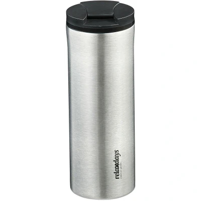 General description This Relaxdays Insulated Mug is the perfect solution for enjoying your favorite hot or cold drinks on the go. Made from durable stainless steel, this reusable coffee mug features a double-walled, vacuum-insulated design that keeps your beverages at the desired temperature for hours. Whether you're commuting, traveling, or at the office, this thermal travel flask ensures you can enjoy coffee, tea, or water without worry. Technical specifications Dimensions: approx. 20 x 7 cm (H x D) Capacity: approx. 400 ml Weight: approx. 310 g Material: Stainless steel, plastic (BPA-free) Color: Silver, black Insulation: Keeps drinks hot or cold for up to 6 hours Other information Leakproof plastic lid for secure carrying Suitable for carbonated drinks Rubber coating on the bottom for stability Hand wash recommended Scope of delivery: 1x travel mug (decorative items not included)