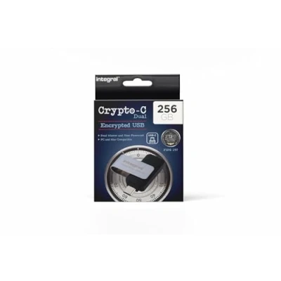 Integral 256GB Crypto C Dual Encrypted USB Flash Memory Drive, AES XTS 256 Bit Hardware 3.2 with Secure Password Certified to FIPS 197, Compatible Mac, MacBook, PC, laptop