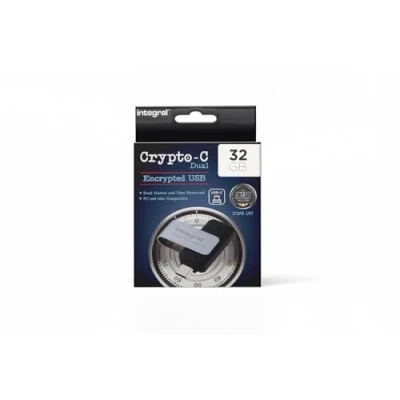 Integral 32GB Crypto C Dual Encrypted USB Flash Memory Drive, AES XTS 256 Bit Hardware 3.2 with Secure Password Certified to FIPS 197, Compatible Mac, MacBook, PC, laptop