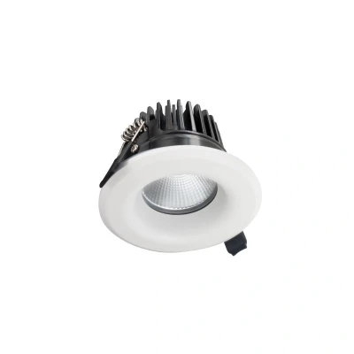 Fire rated LED downlight in a matt white finish from Integral LED. The fully integrated LED light source produces a light output of 640 lumens. With a beam angle of 55 degrees its dimmable as standard and has a 3000K warm white colour temperature.