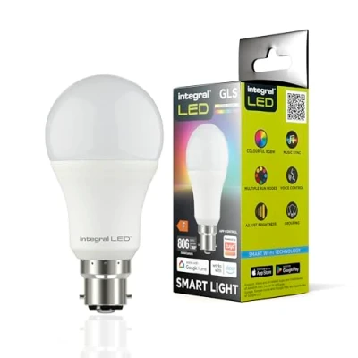 Integral LED 2 Pack Smart GLS B22 Dimmable Colour Changing 2.4GHz WiFi Bulb Warm, Cool & Daylight White 2700K 6500K, 806lm, 8.5W (60W Equivalent) App Controlled and Alexa Google Home Compatible