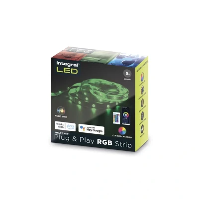 Integral LED 5m RGB Strip Light, WiFi & Smart App Control, Plug Play, Colour Changing, Dimmable, Music Sync Includes UK Adapter IR Controller Works with Alexa and Google Assistant