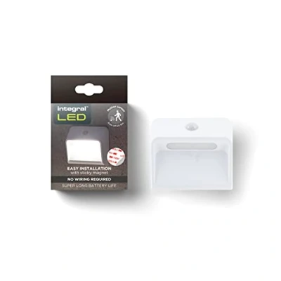 Integral LED SensorLux Warm White Motion Sensor Night Light with Magnetic Plate Solid Construction, Rechargeable 2200mAh Battery Easy to Install for Stairs, hallways, Indoor porches, and wardrobes.