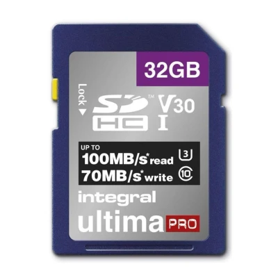 This Integral V30 Class 10 SD Memory Card is compatible with many different devices, including DSLR, compact digital cameras, camcorders and SD compatible laptops.There's less waiting around with fast read speeds up to 100 MB/s for easy transfers. With a U3 speed card, it's ideal for recording 4K Ultra HD video. It also has protection against water, freezing temperatures and shock to help keep your data safe while you're on the go.