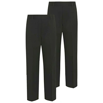Integriti Schoolwear 2PK Boys School Trousers Elasticated Waist Comfort Fit Black Charcoal Grey Navy Blue Age 3 16 Years