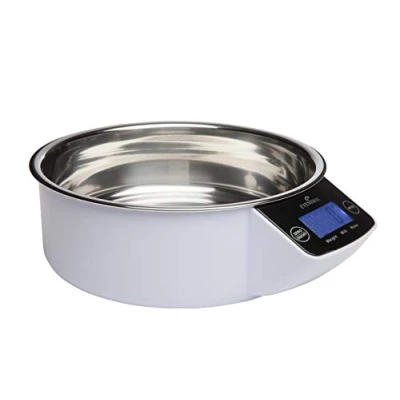 The Intelligent Pet Bowl allows for perfect food portioning. You can easily see the amounts of food and water thanks to the LCD display. Allows you to weigh dry food and serve the meal to your animal. removable, dishwasher-safe stainless steel bowl. Roar overweight or diabetic animals select weight unit in grams, kilograms, ml (fluids), lb, oz. Easy to use with LCD display size: 22.5 x 18.5 x 7 cm 81876: capacity 1 l / 500 g dry food. Weighing scale from 1 g to 5 kg. 2 alkaline batteries 1.5 volt LR03 required (not included) 81877: capacity 1.8 l / 800 g dry food. Weighing scale from 1 g to 5 kg. 1 lithium battery 3 volt CR2032 required (included)