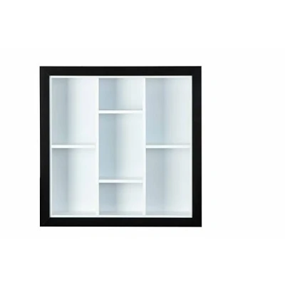 The practical wall shelf offers space and can be used universally thanks to the modern Black & White design. An absolute eye-catcher in various living rooms or work spaces Material: MDF, colour: black / white Built-up dimensions: Width: 66.50 x height: 66.50 x depth: 13.70 cm In this shelf you will find enough space to place your favourite pieces and decoration. Put your most beautiful pieces stylishly in scene Easy to assemble - comes with illustrated, clear assembly instructions, making assembly child's play The illustrated occasional furniture and decoration are not included in the delivery