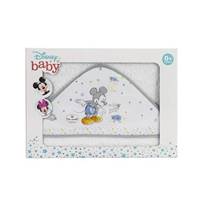 AmazonDisney Mickey Counting Sheep Baby Bath Cape. Bath cape from the new Disney collection made of 100% cotton with terry finish. Size maxicayer 100 x 100 cm. Perfect as a gift thanks to the decorative box in which it is presented.