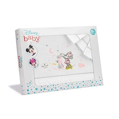 Disney Minnie Mouse Maxi Sheet in White and Grey Disney Maxi Sheet Made of 100% Cotton Includes: fitted sheet, flat sheet and pillowcase, in a decorative box.