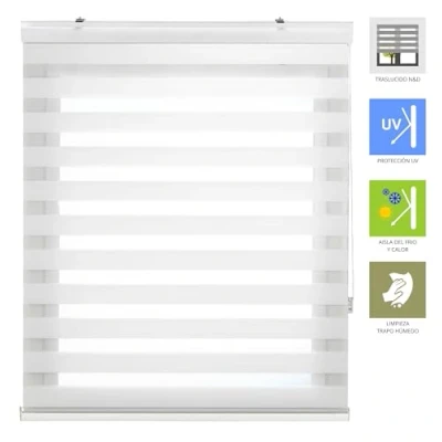 Premium Night & Day Gallery Design: Our premium roller blind features an elegant aluminium drawer that hides the mechanism, bringing a touch of sophistication to any space. 100% polyester double fabric allows perfect light control for maximum versatility. EASY TO INSTALL - Pre-assembled for your convenience, this blind comes with everything you need for effortless wall or ceiling installation. Enjoy the elegance and functionality without hassle. White PVC Mechanism with Child Safety: Adjust height and light input easily with our safe and reliable chain mechanism. With families in mind, we include a child safety system to protect the little ones. Elegant counterweight seen: Apart from its functionality, this blind stands out thanks to its design with a visible counterweight that adds a unique decorative element. Keep your blind spotless with just a damp cloth to clean. LIGHT CONTROL AND PRIVACY AT YOUR REACH: With the ability to adjust the light input, our night and day roller blind is ideal for any room. Experience the convenience of personalizing your ambiance at any time of day.