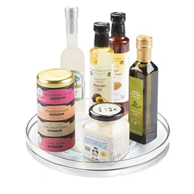 KITCHEN TURNTABLE ORGANIZER: Provides efficient rotating storage for kitchen and pantry items in cabinets, on shelves, or in the refrigerator OPEN DESIGN WITH RAISED EDGES: Open design keeps items visible and easily accessible, while raised edges prevent them from falling out while turning the organizer VERSATILE USES: Can also be used in the bathroom, bedroom, office, or anywhere that you need additional organization MADE WITH BPA-FREE PLASTIC: Durable BPA-free plastic construction stands up to every day use and is easy to clean with mild soap and water EFFICIENT SIZE: Measures 11.25" x 11.25" x 1.75" and is ideal for adding storage in compact spaces