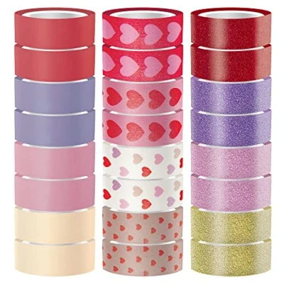 Interdruk 24 Rolls of Washi Tapes Masking Set Colourful Decorative for Scrapbooking, Bullet Journals, Gift Wrapping and Decoration 120 meters long Hearts Theme