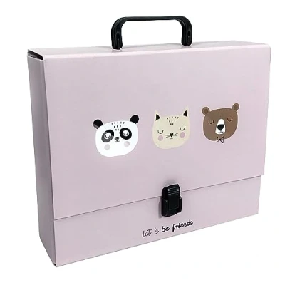 Charming Animal Theme: Each folder comes adorned with delightful animal characters that kids will love, making organizing a fun and engaging experience. Sturdy and Durable: Crafted from high-quality materials, the case is built to withstand the rigors of daily use, ensuring your child's important papers and notebooks are kept safe and secure. Ample Storage Space: With its spacious design, this folder can hold numerous documents, notebooks, coloring books, or even arts and crafts materials, keeping everything neatly in one place. Easy-to-Carry Handle: The built-in handle allows kids to conveniently carry their box to school, activities, or on family trips, promoting independence and responsibility. Versatile and Practical: Not just for school use, the file is also perfect for home organization, storing activity books, certificates, or keeping special drawings and mementos safe.