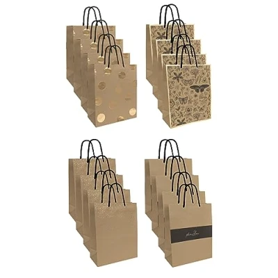 Interdruk Medium Gift Bag 26,5 x 33 13 cm Kraft Gold Pack of 12