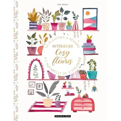 Intérieurs cosy et fleuris: 40 planches à peindre l'aquarelle ou colorier