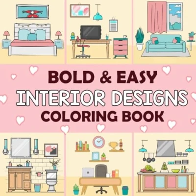 Interior Designs Bold and Easy Coloring Book for Adult: 45 Page Simple Large Print Stress Relief, Calm Relaxation (Bold Book)