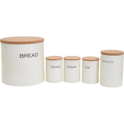 JoybuyThe Easton 5-Piece Kitchen Storage Set in Cream offers elegant, durable metal containers with a soft cream finish and natural bamboo lids for organizing tea, coffee, sugar, bread, and biscuits. Its minimalist design and secure closures combine style and functionality for any kitchen.