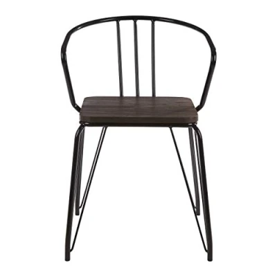 Interiors by Premier Black Metal and Elm Wood Arm Chair, Accent Dining Versatile Wooden Chair for Home, Office, Lounge